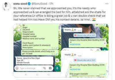 गंजाम कलेक्टरांच्या या ट्विटला सोनू सूदने थेट पुरावाच दाखवत उत्तर दिले. सोनूने संबंधित व्यक्तीच्या नातेवाईकांसोबत चॅटवर झालेल्या संवादाचे स्क्रीनशॉट शेअर केले आहेत.