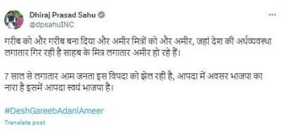 साहू यांनी अदानी आणि गरिबीच्या मुद्द्यावरून केंद्रालाही धारेवर धरलं होतं.