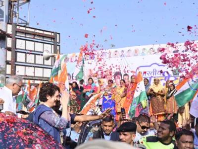 काँग्रेस सरचिटणीस प्रियांका गांधी वड्रा यांच्या स्वागतासाठी रायपूरच्या रस्त्यावर फुलांच्या पाकळ्या पसरण्यात आल्या होत्या. प्रियंका गांधी आज ८५व्या अधिवेशनासाठी रायपूरमध्ये पोहोचल्या आहेत.