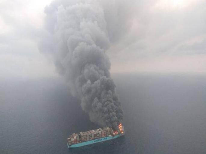 1 / 4लक्षद्वीपच्या अगती बेटाजवळ मर्स्क या भारतीय कंपनीच्या कंटेनर वाहून नेणाऱ्या जहाजाला मोठी आग लागली.2 / 4हे जहाज सिंगापूरहून सुएझच्या दिशेने प्रवास करत होते.3 / 4आग लागल्यामुळे जहाजावरील 27 कर्मचाऱ्यांनी समुद्रात उड्या टाकल्या.4 / 4आग लागल्यानंतर कर्मचाऱ्यांनी मदतीसाठी इतर व्यापारी जहाजांशी संपर्क साधला. मात्र, मदत येईपर्यंत हे जहाज पूर्णपणे जळाले होते. ही आग इतकी तीव्र होती की ज्वाळांची उंची तब्बल 25 मीटर इतकी होती.