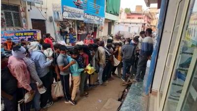 ही घटना शिवपुरीमधील शंकर कॉलनीमध्ये घडली आहे. तिथे एका किराणा दुकानासमोर गुटखा खरेदीसाठी मोठी रांग लागली होती.