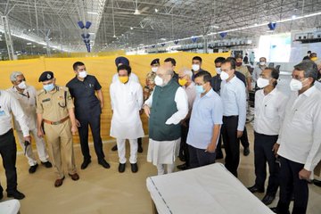 अमित शाह यांनी डॉक्टरांशी चर्चा करून सर्व रुग्णांच्या प्रकृतीची चौकशी केली. तसेच सेंटरमध्ये असलेल्या सोयी-सुविधांबाबत माहिती घेतली आहे.
