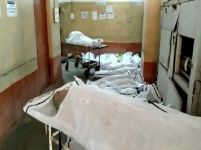 रुग्णालयात मरण पावलेल्या रुग्णांचे मृतदेह अंत्यसंस्कारांसाठी शवागारात ठेवले जात आहेत. मृतांची संख्या मोठी असल्यानं शवागार पूर्ण भरलं आहे.