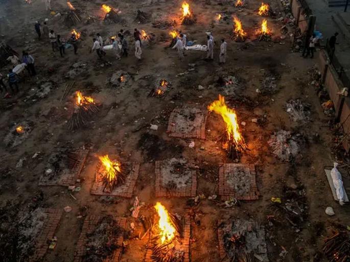 1 / 10देशातील कोरोना रुग्णांच्या संख्येत दिवसागणिक वेगानं वाढत होत आहे. गेल्या पाच दिवसांपासून देशात दररोज ३ लाखांहून अधिक कोरोना रुग्ण आढळून येत आहेत. कोरोना मृतांच्या संख्येतही झपाट्यानं वाढ होत आहे.2 / 10कोरोना रुग्णांच्या संख्येत वाढ होत असल्यानं देशातील आरोग्य व्यवस्था व्हेंटिलेटरवर आहे. ऑक्सिजन, औषधांचा तुटवडा सर्वच राज्यांना जाणवत आहे. गेल्या काही दिवसांपासून दररोज २ हजारहून अधिक जणांचा कोरोनामुळे मृत्यू आहे. मात्र प्रत्यक्षात हा आकडा त्याहून अधिक असल्याचा दावा न्यूयॉर्क टाईम्सनं केला आहे.3 / 10भारताच्या अनेक राज्यांमधील स्मशानभूमींमध्ये दिवसरात्र चिता जळताहेत. या स्मशानभूमींमध्ये येणाऱ्या मृतदेहांचा आकडा आणि प्रशासनाकडे असलेली मृतांची आकडेवारी यात खूप मोठी तफावत असल्याचं न्यूयॉर्क टाईम्सनं म्हटलं आहे.4 / 10प्रशासन आणि राजकारणी मिळून कोरोना रुग्णांचा आकडा लपवत असल्याचं टाईम्सनं वृत्तात म्हटलं आहे. मिशिगन विद्यापीठात साथीचे रोग तज्ज्ञ म्हणून कार्यरत असलेल्या भ्रमर मुखर्जींनी भारतातील कोरोना मृतांचा आकडा दोन ते पाचपट असल्याचा दावा केला.5 / 10भारतातील कोरोना मृतांचा आकडा लपवला जात आहे. आम्ही केलेल्या अभ्यासानुसार, हा आकडा सध्याच्या दोन ते पाचपट आहे, अशी माहिती मुखर्जींनी दिली.6 / 10अहमदाबादमधल्या सर्वात मोठ्या स्मशानभूमीत सध्या दिवसरात्र अंत्यसंस्कार आहेत. इथे काम करत असलेल्या सुरेश भाईंनी अशी परिस्थिती याआधी कधीही पाहिलेली नाही. मात्र कोरोनामुळे मृत्यू झालेले असतानाही अनेकांच्या मृत्यूचं कारण आजारपण असं नोंदवलं जात आहे.7 / 10मृतदेहात अंत्यसंस्कारासाठी येणाऱ्यांची नोंद ठेवताना शक्यतो कोरोनाचा उल्लेख करू नका, अशा सूचना स्मशानभूमीत काम करत असलेल्या सुरेश भाईंना वरिष्ठांकडून देण्यात आल्या आहेत. त्यांच्या वरिष्ठांनी मात्र यावर कोणतीही प्रतिक्रिया दिलेली नाही.8 / 10८० च्या दशकात भोपाळमध्ये वायूगळती झाली. त्यात हजारो जणांचा बळी गेला. त्यानंतर प्रथमच भोपाळमधल्या स्मशानभूमींमध्ये इतकी गर्दी पाहायला मिळत आहेत, इतक्या व्यक्तींवर अंत्यसंस्कार सुरू आहेत, अशी माहिती स्थानिकांनी दिली.9 / 10एप्रिलच्या मध्यात १३ दिवसांमध्ये भोपाळमध्ये ४१ जणांचा कोरोनामुळे मृत्यू झाल्याची नोंद प्रशासनाकडे आहे. मात्र भोपाळमधील मुख्य स्मशानभूमी आणि कब्रस्तानात कोरोना प्रोटोकॉलसह अंत्यसंस्कार झालेल्यांचा आकडा १ हजाराच्या पुढे असल्याचं न्यूयॉर्क टाईम्सनं म्हटलं आहे.10 / 10केंद्रीय आरोग्य मंत्रालयानं दिलेल्या माहितीनुसार आतापर्यंत देशात कोरोनामुळे मृत्यूमुखी पडलेल्यांची संख्या १ लाख ९५ हजार १२३ इतकी आहे. मात्र न्यूयॉर्क टाईम्सच्या दाव्यानुसार ती ४ 