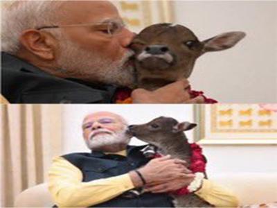 दरम्यान, पंतप्रधान मोदी हे एका फोटो या गोंडस वासराचे चुंबन घेतानाही दिसत आहेत.