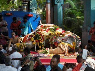 हत्तीणीच्या मृत्यूची बातमी इंटरनेट मीडियावर वाऱ्यासारखी पसरताच केंद्रशासित प्रदेशातील विविध भागातून लोक श्रद्धांजली वाहण्यासाठी मंदिर परिसरात आले. हत्तीणीच्या मृतदेहावर फुलांचा वर्षाव करण्याबरोबरच लोकांनी हारही घातला.