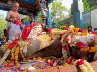 लक्ष्मी नावाची हत्ती १९९५ मध्ये एका उद्योगपतीने मंदिर संकुलाला दान केली होती. ही हत्तीण भक्त आणि परदेशी पर्यटकांमध्ये ते खूप लोकप्रिय झाले होते. ही हत्तीण येथे येणाऱ्या भाविकांना आशीर्वाद देत असे त्यामुळे ती इथं प्रसिद्ध झाली होती.