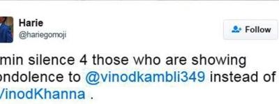 बॉलिवूडचे ज्येष्ठ अभिनेता विनोद खन्ना यांच्या मृत्यूची बातमी गुरूवारी समोर आल्यानंतर सोशल मीडियाच्या माध्यमातून अनेक जणांनी त्यांना श्रद्धांजली वाहिली.