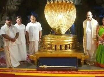 यापूर्वी, तामिळनाडूच्या तेनी येथील सुप्रसिद्ध कापड व्यापारी थांगा दोराई यांनी २०१८ मध्ये भगवान व्यंकटेश्वराला १.७५ कोटींची सोन्याची तलवार दान केली होती. यासाठी सुमारे सहा किलो सोन्याचा वापर केला गेला होता.