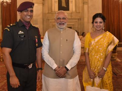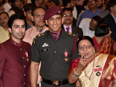 महेंद्रसिंग धोनीने लेफ्टनंट कर्नलचा पोषाख घातला होता. यावेळी त्याची पत्नी साक्षीदेखील उपस्थित होती.