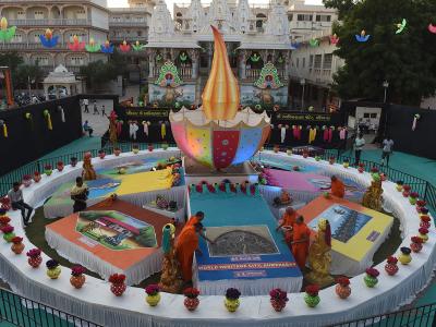 अहमदाबादमध्ये लोकांनी रस्त्यावर मोठमोठ्या रांगोळ्या काढल्या आहेत.