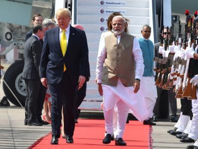 पंतप्रधान नरेंद्र मोदी यांनी आपल्या या मित्राचं गळाभेट घेऊन, 'नमस्ते ट्रम्प' म्हणत स्वागत केलं.