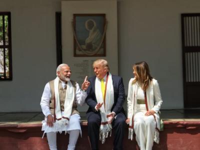 साबरमती आश्रमात ट्रम्प कुटुंबाचं सहर्ष स्वागत झालं.