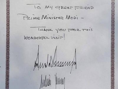 पण, आश्रम कसा वाटला, हे अभिप्राय वहीत लिहिताना ट्रम्प यांनी फक्त पंतप्रधान मोदींना धन्यवाद दिले.