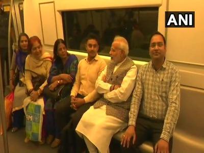 नरेंद्र मोदी यांनी लोक कल्याण मार्ग ते अलीपूर रोड असा मेट्रोने प्रवास केला.मेट्रो प्रवासादरम्यान त्यांनी प्रवाशांशी संवाद साधला. तसेच, प्रवाशांनी त्यांच्यासोबत सेल्फी घेतली.