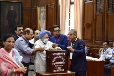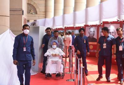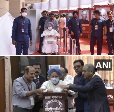 माजी पंतप्रधान मनमोहन सिंग हे तर व्हील-चेअरवरून मतदानासाठी आले. एक-एक करत शिस्तबद्ध पद्धतीने संसद भवनाच्या आतील नेत्यांची छायाचित्रे मीडियाच्या कॅमेऱ्यात कैद झाली.