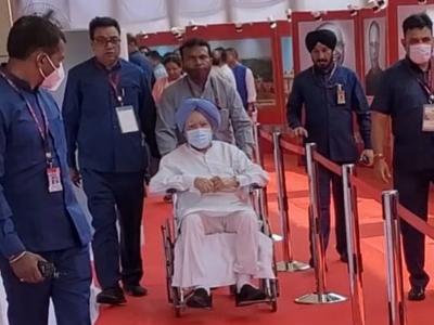 डॉ. मनमोहनसिंग यांना मतदान करतानाही चारही बाजूंनी तेथील अधिकाऱ्यांनी पकडले होते. अशा नाजूक प्रकृतीपरिस्थितीतीही सिंग यांनी आपला मतदानाचा हक्क बजावला