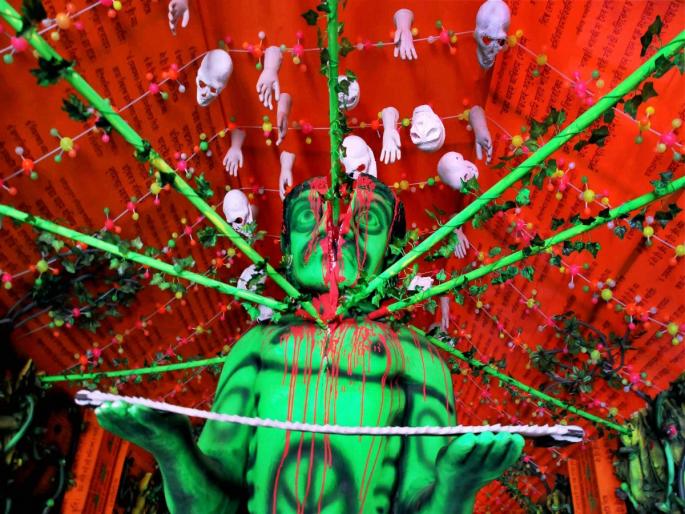 1 / 4पश्चिम बंगालमध्ये दुर्गापूजेला विशेष महत्त्व आहे. नवरात्रोत्सव बंगालमध्ये दरवर्षी अतिशय अनोख्या पद्धतीने साजरा केला जातो. 2 / 4बंगालमध्ये नवरात्रीच्या सहाव्या दिवसापासून सुरु होणारा हा सण दहाव्या दिवशी संपतो. यामध्ये सार्वजनिक ठिकाणी मोठमोठे मंडप घातले जातात.3 / 4 दुर्गा देवीची पूजा पाहण्यासाठी तसंच एकापेक्षा एक देखावे पाहण्यासाठी लोक मोठ्या प्रमाणात गर्दी करतात.4 / 4यंदा शहरात देवीच्या पुजेसाठी एकुण तीन हजार मंडप सजले आहेत. त्यापैकी एका मांडवात बाहुबली 2 सिनेमाचा देखावा साकारण्यात आला आहे.