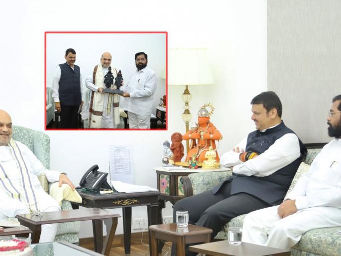 1 / 8बंडखोर शिवसेना नेते एकनाथ शिंदे (Eknath Shinde) यांनी मुख्यमंत्रीपदाची तर देवेंद्र फडणवीस (Devendra Fadnavis) यांनी उपमुख्यमंत्रीपदाची शपथ घेतल्यावर सोमवारी शिंदे-फडणवीस सरकारने विश्वासदर्शक ठराव बहुमताने जिंकला. 2 / 8त्यानंतर मुख्यमंत्री एकनाथ शिंदे यांचे ठाण्यात जोरदार स्वागत झाले. तसेच उपमुख्यमंत्री देवेंद्र फडणवीस यांचेही नागपूरमध्ये जल्लोषात स्वागत करण्यात आले. 3 / 8शिवसेनेचे इतरही बंडखोर आमदार त्यांच्या मतदारसंघात गेले. त्यानंतर, मुख्यमंत्री आणि उपमुख्यमंत्री आता मुंबईत परतले असून आजच ते दिल्लीत पोहोचले आहेत. 4 / 8शिंदे-फडणवीस जोडीने बैठकांचा धडाका लावला असून आज सायंकाळी ते राजधानी दिल्लीत पोहोचले आहेत. देवेंद्र फडणवीसांनीच आपल्या सोशल मीडिया अकाऊंटवरुन फोटो शेअर करत यासंदर्भात माहिती दिली. 5 / 8त्यानंतर, आता दोन्ही नेत्यांनी दिल्लीत गृहमंत्री अमित शहा यांची भेट घेतली आहे. अमित शहांची भेट घेतल्याचे फोटो सध्या सोशल मीडियातून समोर आले आहेत. 6 / 8मुख्यमंत्री एकनाथ शिंदे यांच्याकडून पंढरपूरच्या विठ्ठल रुक्मिणीची मूर्ती अमित शाहांना भेट देण्यात आली आहे. या भेटीत नेमकी काय चर्चा झाली याबाबत माहिती नाही. 7 / 8राज्य मंत्रिमंडळ विस्तार आणि पंतप्रधान नरेंद्र मोदींची औपचारीक भेट घेण्यासाठी शिंदे-फडणवीस सरकार दिल्लीत दाखल झालं आहे. त्यामुळे, या भेटीतही तीच चर्चा झाल्याचा अंदाज व्यक्त होत आहे. 8 / 8मुख्यमंत्री उद्या शनिवार (9 जुलै) रोजी त्यांची पंतप्रधान नरेंद्र मोदींसमवेत भेट होणार असून उपमुख्यमंत्री देवेंद्र फडणवीस हेही मुख्यमंत्र्यांसोबत असणार आहेत. नव्या सरकारच्या मंत्रिमंडळ विस्ताराबाबत या भेटीत मुख्यत्वे चर्चा होणार असल्याचे समजते.