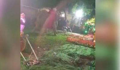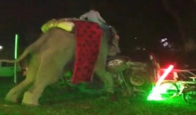 प्रयागराजमधील नारायणपूर येथे ११ जून रोजी एका विवाहाचे आयोजन करण्यात आले होते. त्यामध्ये रात्री वरात पोहोचली. यादरम्यान, तिथे असलेला हत्ती बिथरला. या हत्तीने विवाहस्थळाचं मोठ्या प्रमाणात नुकसान केलं. हा हत्ती एवढ्यावरच थांबला नाही तर आजूबाजूच्या अनेक घरांचेही नुकसान केले.