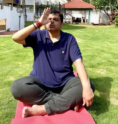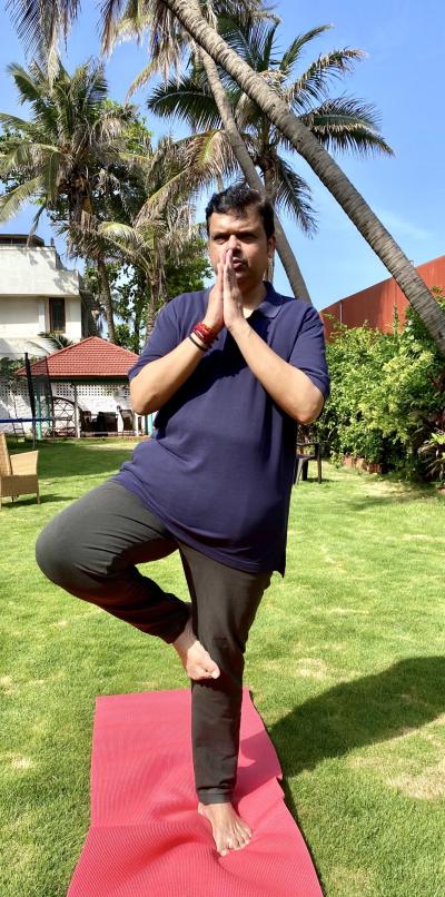 राज्याचे विरोधी पक्षनेते देवेंद्र फडणवीस यांनीही आपल्या निवासस्थानी योगासने करत योग दिन साजरा केला