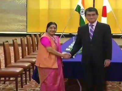 जपानचे परराष्ट्रमंत्री तारो कोनो यांची भेट घेऊन स्वराज यांनी त्यांच्याशी द्विपक्षीय संबंधांबाबत चर्चा केली.