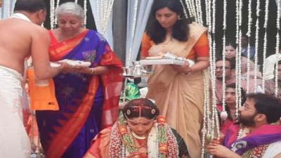 अर्थमंत्री निर्मला सीतारामन यांची मुलगी परकला वांगमयीचा विवाह सोहळा नुकताच पार पडला. बंगळुरूतील एका हॉटेलमध्ये या विवाह सोहळ्याचं आयोजन करण्यात आलं होतं. अत्यंत साध्या पद्धतीनं हा सोहळा पार पडला.