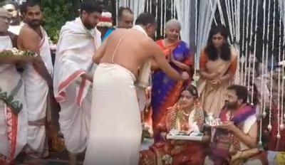 अर्थमंत्री निर्मला सीतारामन यांच्या मुलीच्या लग्नाचे फोटो अनेकांनी सोशल मीडियावर शेअर केले आहेत. काही युजर्सनी या लग्नाचा व्हिडीओही शेअर केला आहे.