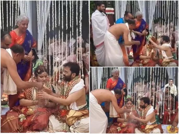 1 / 7अर्थमंत्री निर्मला सीतारामन यांची मुलगी परकला वांगमयीचा विवाह सोहळा नुकताच पार पडला. बंगळुरूतील एका हॉटेलमध्ये या विवाह सोहळ्याचं आयोजन करण्यात आलं होतं. अत्यंत साध्या पद्धतीनं हा सोहळा पार पडला. 2 / 7या लग्नात कुटुंबातील सदस्य आणि मित्रमंडळी सहभागी झाली होती. मीडिया रिपोर्ट्सनुसार, परकला वांगमयी आणि प्रतीकच्या या लग्नात कोणत्याही राजकीय पाहुण्याला आमंत्रित करण्यात आलं नव्हतं. निर्मला सीतारामन यांच्या मुलीचा विवाह हिंदू परंपरेनुसार उडुपी अदामारू मठाच्या संतांच्या आशीर्वादानं पार पडला.3 / 7अर्थमंत्री निर्मला सीतारामन यांच्या मुलीच्या लग्नाचे फोटो अनेकांनी सोशल मीडियावर शेअर केले आहेत. काही युजर्सनी या लग्नाचा व्हिडीओही शेअर केला आहे. 4 / 7व्हिडीओमध्ये अत्यंत साध्या पद्धतीनं हा सोहळा पार पडताना दिसतोय. तसंच त्या ठिकाणी निर्मला सीतारामन उपस्थित असून वैदिक मंत्रोच्चारही ऐकू येत आहेत.5 / 7अर्थमंत्री निर्मला सीतारामन यांची मुलगी परकला वांगमयी या व्यवसायानं पत्रकार आहेत. वांगमयी यांनी मॅसॅच्युसेट्समधील बोस्टन येथील नॉर्थवेस्टर्न युनिव्हर्सिटीमधून पत्रकारितेत मास्टर्स केलंय. 6 / 7याशिवाय त्यांनी दिल्ली विद्यापीठातून इंग्रजी साहित्याचंही शिक्षण पूर्ण केलंय. त्यांनी द हिंदू, लाइव्ह मिंट आणि द व्हॉईस ऑफ फॅशन या मीडिया कंपन्यांमध्ये काम केलंय.7 / 7याआधी, सप्टेंबर २०१९ मध्ये निर्मला सीतारामन यांनी डॉटर्स डेनिमित्त परकला यांच्या बालपणीचा एक फोटो शेअर केला होता. त्यात त्यांचं वर्णन वर्णन एक मित्र, तत्त्वज्ञ आणि मार्गदर्शक म्हणून केलं होतं.