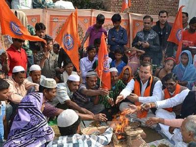 आग्रा येथे धर्म जागरण मंचाने २०० गरीब मुस्लीमांना घरवापसी कार्यक्रमांतर्गत हिंदू धर्मात आणल्याच्या घटनेने खळबळ. हे धर्मांतर स्वेच्छेने झाले की जबरदस्तीने व लालूच दाखवून यावरून पेटले रणकंदन