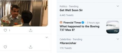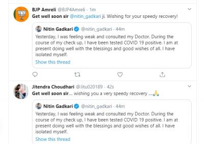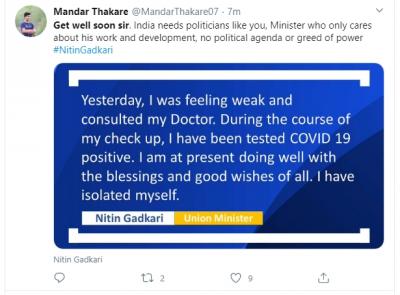 नितीन गडकरी हे देशातील मोठे नेते आहेत, तसेच सर्वच राजकीय पक्षातील नेत्यांमध्ये आणि कार्यकर्त्यांमध्ये त्यांच्याबद्दल आदर आहे. त्यामुळेच, गडकरींच्या कोरोनाची बातमी समजताच ट्विटर ट्रेंड करत आहे.