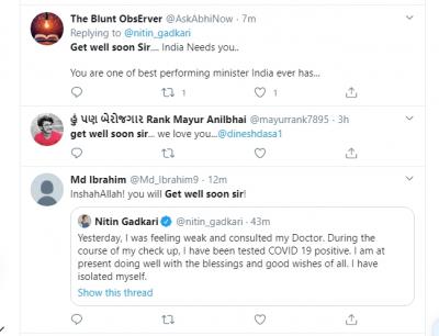 त्यामुळेच, गडकरींनी लवकरात लवकर कोरोनाला मात देऊन, देशाच्या सेवेत हजर राहण्यासाठी चाहत्यांकडून ट्विटरवरुन प्रार्थना व ट्रेंड सुरू आहे.