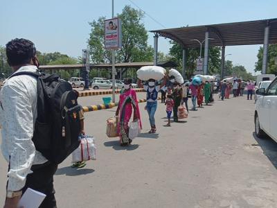 केंद्र सरकारने शिथिलता दिल्यानतर तब्बल ४१ दिवसानंतर मजुरांचा स्वगृही जाण्याचा मार्ग सुकर झाल्याने त्यांच्या चेहऱ्यावर समाधानाचे भाव झळकत होते.