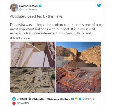 पंतप्रधान नरेंद्र मोदींनी या बातमीनंतर देशावीसीयांचे अभिनंदन करत, स्वत:लाही अत्यानंद झाल्याचे म्हटले आहे. गुजरातमधील धोलावीरा हे ठिकाण मोदींच्या जुन्या आठवणींचं माहेर आहे.