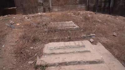 मशिदीच्या पश्चिमेकडील भिंतीकडे जाताना सर्वेक्षण पथकाला सापडलेल्या दोन थडग्यांसारख्या आकृत्या कोणत्या आहेत?