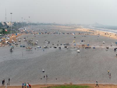 गुरूवारी सलग पाच तासांहून अधिक वेळ पाऊस पडल्यानंतर चेन्नईतील तटवर्ती भागात भरती आल्याचे दिसून आले.