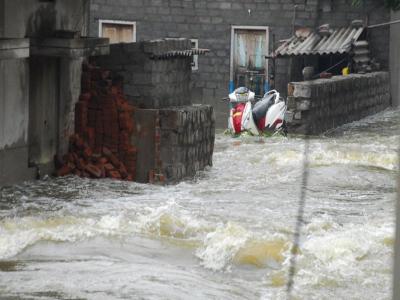 नायडू नगर भागातील पावसामुळे एका घराची भिंत कोसळून तिघे ठार झाले. यात एका चार महिन्याच्या चिमुरड्याचा आणि त्याच्या वडिलांचा समावेश आहे.