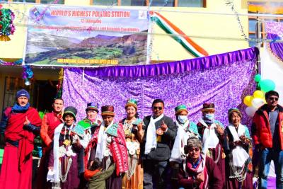 जगातील सर्वात उंच मतदान केंद्र आणि समुद्रसपाटीपासून १५ हजार २५६ फूट उंचीवर असलेल्या हिमाचल प्रदेशमधील टशिगंग गावात तापमान उणे १६ डिग्री सेल्सियस खाली असूनही १०० टक्के मतदान झाले. ही माहिती निवडणूक अधिकाऱ्यांनी दिली आहे.