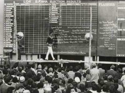 निवडणुकींचा निकाल लागतो तेव्हा आता घरबसल्या टीव्ही चॅनेलच्या माध्यमातून पाहता येतं, मतमोजणी केंद्राच्या बाहेर लावलेल्या स्क्रीनवर निकाल लावला जातो. 1980 साली नवी दिल्लीतील टाइम्स ऑफ इंडिया कार्यालयाबाहेर लावण्यात आलेला हा निकाल पाहा