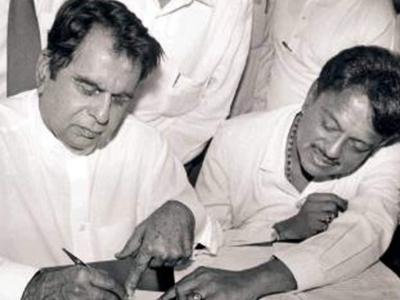 14 मार्च 2000 रोजी काँग्रेसच्या तिकिटावर राज्यसभा उमेदवारीचा अर्ज भरताना अभिनेता दिलीप कुमार हे तत्कालीन मुख्यमंत्री विलास देशमुख यांच्यासोबत. दिलीप कुमार 2000 ते 2006 पर्यंत राज्यसभा खासदार होते.