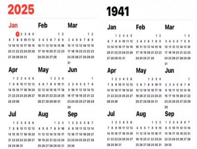 १९४१ आणि २०२५ चे कॅलेंडर सारखेच आहे. हे असं पहिल्यांदाच घडलेले नाही. दर काही दशकांनी, एका वर्षाचे कॅलेंडर मागील वर्षाशी जुळू शकते. म्हणजेच, आठवड्याचा दिवस आणि तारीख सारखीच असू शकते.