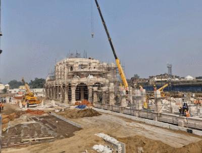 राम मंदिराच्या तळमजल्याचे काम पूर्ण झाले आहे. मंदिराच्या ७० खांबांवर शिल्पाचे काम सुरू आहे.