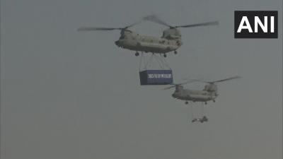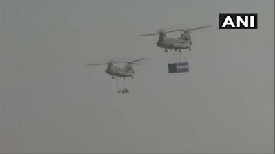 हिंडन एअरबेसवर फ्लाय पास्टची सुरुवात 'आकाशगंगा' म्हणजेच आकाशातून पॅरा-जम्पने झाली. या पॅरा-जम्पमध्ये हवाई दलाचे जवान ट्रान्सपोर्ट एअरक्राफ्टमधून पॅराशूटच्या मदतीने उडी मारल्या. यानंतर निशान-टोली सह सैनिक मार्च पास्ट करण्यात आले.