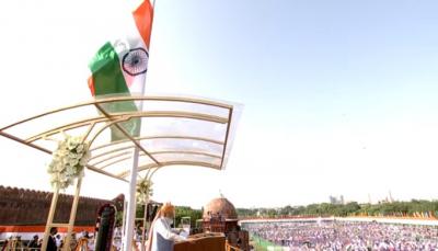 तप्रधान नरेंद्र मोदींनी सलग आठव्यांदा लाल किल्ल्यावरून ध्वज फडकवला. पंतप्रधान मोदींनी यावेळी आपल्या संबोधनाला सुरुवात करताना देशाचे पहिले पंतप्रधान पंडित जवाहरलाल नेहरू, सरदार पटेल, महात्मा गांधी तसेच इतर महापुरुषांचा विशेष उल्लेख केला.