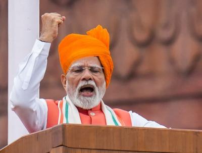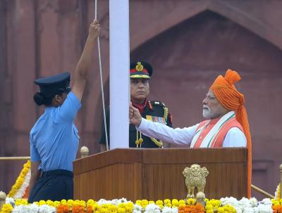 स्वातंत्र्यदिनी पंतप्रधान नरेंद्र मोदी यांनी नवी दिल्लीतील लाल किल्ल्यावरून देशाला संबोधित केले. यंदाचे पंतप्रधान मोदी यांचे स्वातंत्र्यदिनी लाल किल्ल्यावरून केलेले १२ वे भाषण होते. दरवर्षीचे त्यांचे भाषण एका अनोख्या शैलीत असते. त्याचप्रमाणे त्यांचा पोशाख दरवर्षी चर्चेचा विषय ठरतो.
