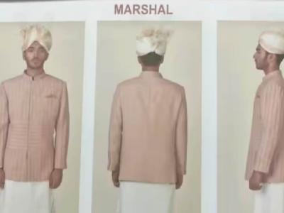 संसदेत मार्शलसाठी पांढरा कुर्ता-पायजमा असलेले जॅकेट असेल. तपकिरी रंगाचे शूज आणि डोक्यावर क्रीम आणि सोनेरी रंगाची पगडी असेल.