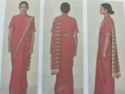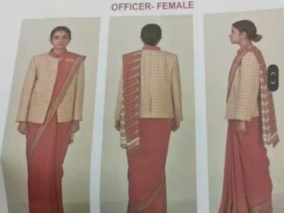 महिला अधिकारी केशरी रंगाच्या साडीत दिसणार आहेत. साध्या केशरी साडीला हिरवी आणि सोनेरी बॉर्डर आणि बंद गळ्याचा पेहराव असेल.