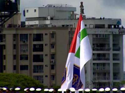 भारतीय नौदलाच्या ध्वजामध्ये याआधी लाल रंगाचं एक क्रॉस मार्क होतं. जे इंग्रजांचं प्रतिक होतं. आता ते हटवण्यात आलं आहे. गुलामीचं निशाण खाली उतरवून आज भारतीय नौदलाला नवा ध्वज मिळाला आहे, असं पंतप्रधान मोदी यावेळी म्हणाले. नौदलाचा नवा ध्वज भारतीय नौदलासाठी नवा अध्याय ठरेल असंही ते म्हणाले. नव्या ध्वजातून क्रॉस ऑफ सेंट जॉर्ज हटवण्यात आलं आहे.