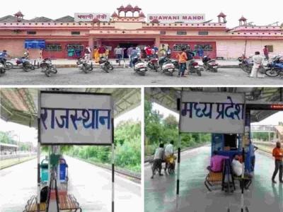 भवानी मंडी रेल्वे स्टेशन दिल्ली-मुंबई रेल्वे मार्गावर स्थित आहे. हे रेल्वे स्टेशन राजस्थान आणि मध्य प्रदेश यांच्या दरम्यान विभागलेलं आहे. दोन वेगवेगळ्या राज्यात विभागलेलं असल्याने येथे थांबणाऱ्या ट्रेनचं इंजिन एका राज्यात तर डबे दुसऱ्या राज्यात थांबतात. या स्टेशनच्या एका बाजूला राजस्थानचा बोर्ड आहे. तर दुसऱ्या बाजूला मध्य प्रदेशचा बोर्ड आहे.