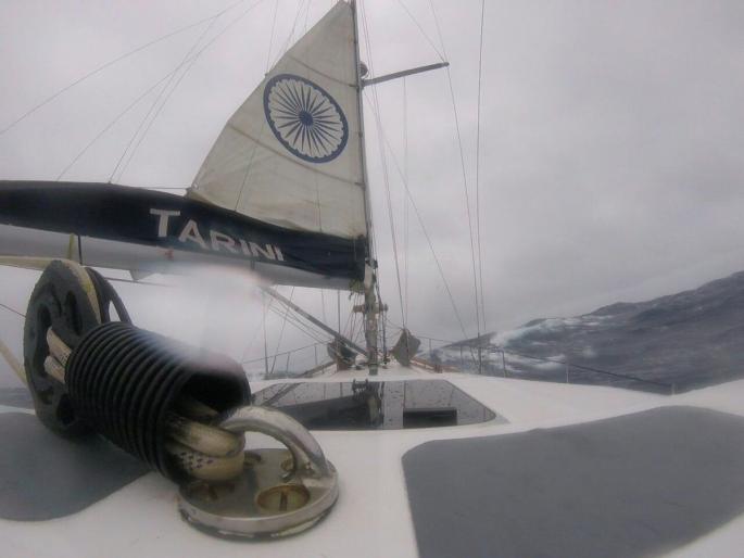 1 / 4सहा धाडसी महिला नौसैनिकांसह जगभ्रमंतीवर निघालेल्या भारतीय नौदलाच्या ‘आयएनएसव्ही तारीणी’ला पॅसिफिक समुद्रात वादळाचा सामना करावा लागला. 2 / 4मात्र नौदलाच्या साहसी वीरांगनांनी या वादळाचा धैर्याने सामना करत सुखरूपपणे वादळातून वाट काढली.3 / 4वादळात सापडल्यावर नौकेवर नियंत्रण राखताना महिला नौसैनिक.4 / 4 १0 सप्टेंबर २0१७ रोजी गोव्यातील ‘आयएनएस मांडवी’ तळावरुन केंद्रीय संरक्षणमंत्री निर्मला सीतारामन् यांनी या बोटीला बावटा दाखवून परिक्रमेचा शुभारंभ केला होता. आशियातील महिलांचा समुद्री मार्गाने पृथ्वी परिक्रमा करण्याचा ही पहिलाच प्रयत्न असून यासाठी गेल्या दोन वर्षांपासून तयारी चालू होती. स्वदेशी बनावटीच्या छोट्याशा शिडाच्या बोटीवर स्वार होऊन या महिला अधिकारी ‘नाविका सागर परिक्रमा’ अंतर्गत जग भ्रमंतीसाठी निघाल्या आहेत. हा संपूर्ण प्रवास २१,६00 सागरी मैल अंतराचा आहे आणि तो पूर्ण करण्यासाठी १६५ दिवस लागणार आहेत.